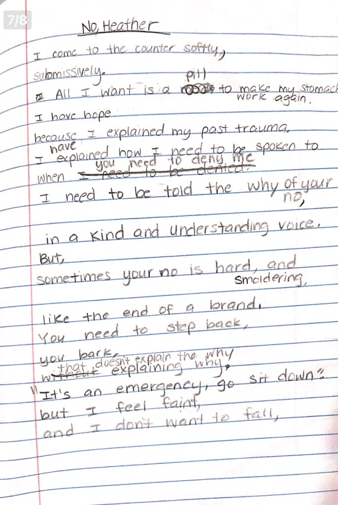 7.) Frenetically wrote poems and quotes and drew things in the composition notebook they give you inpatient with the tiny golf pencils (regular pencils and pens are not allowed be cause Depressed patients often try to self-harm with them).
